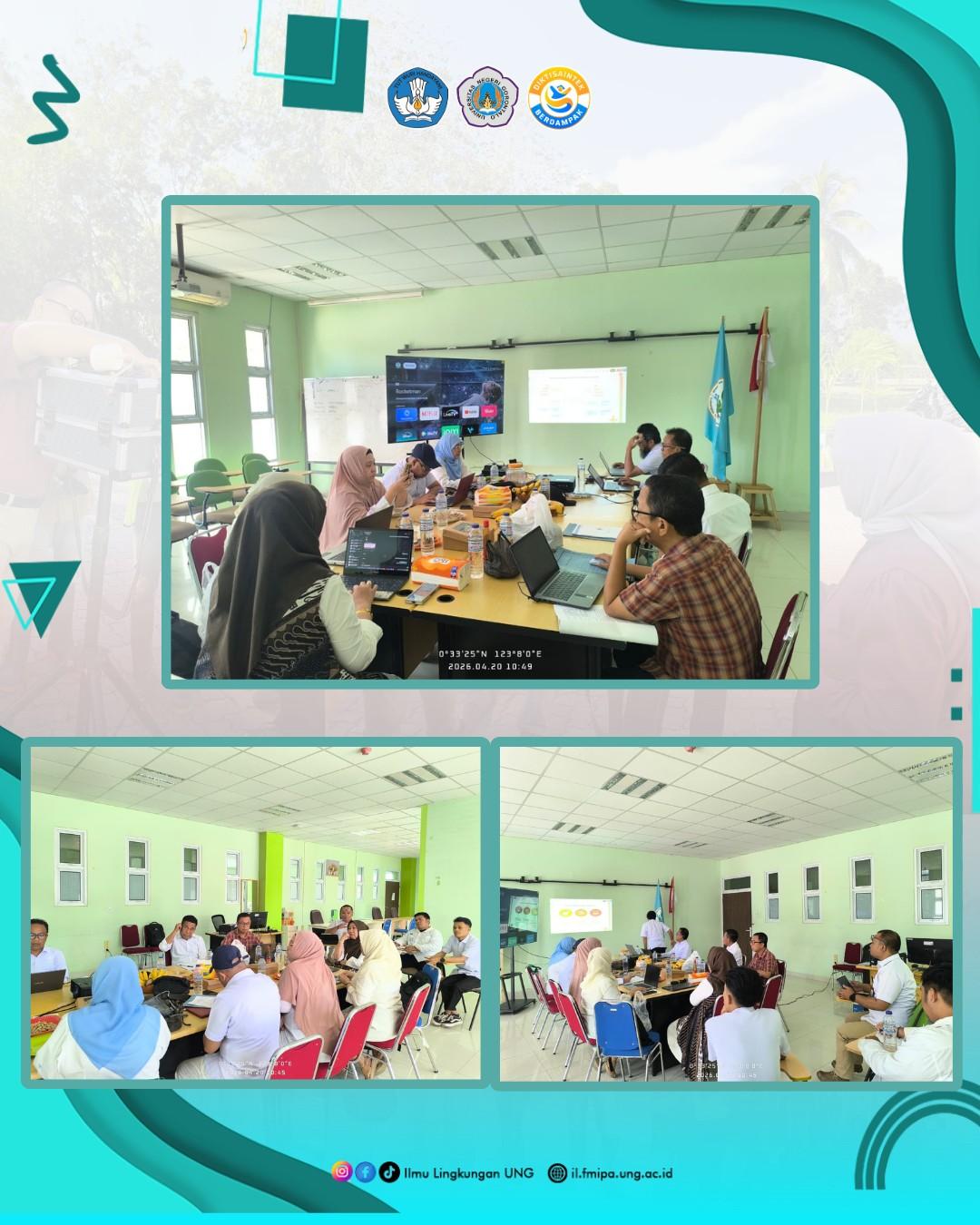 Bone Bolango, 20 April 2026 - Jurusan Ilmu Lingkungan Fakultas Matematika dan Ilmu Pengetahuan Alam Universitas Negeri Gorontalo melaksanakan rapat sebagai bagian dari persiapan Workshop Kurikulum yang akan datang. Kegiatan ini berlangsung di Jurusan Ilmu Lingkungan dengan melibatkan seluruh dosen di lingkungan jurusan. Rapat ini bertujuan untuk meninjau kembali kurikulum yang ada agar tetap relevan dengan perkembangan ilmu pengetahuan dan kebutuhan dunia kerja, khususnya di bidang lingkungan.